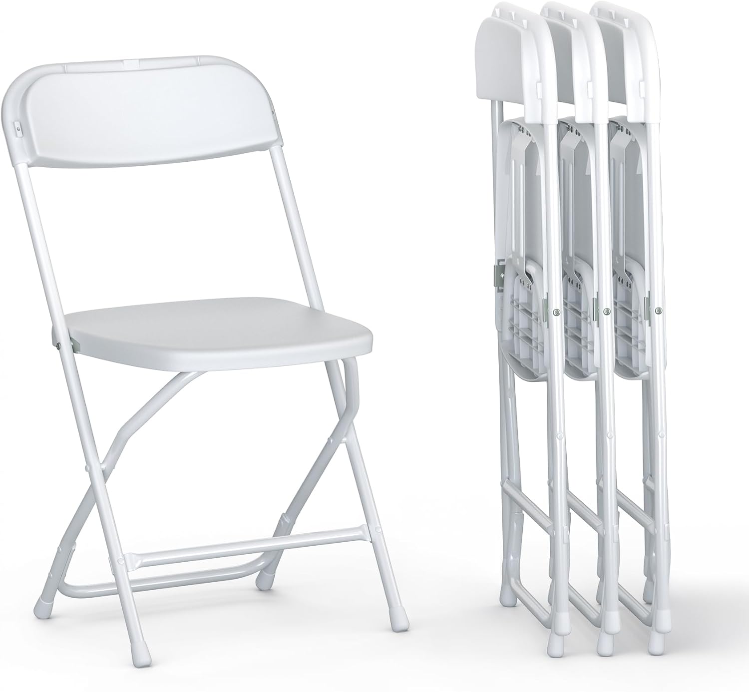 4 PACK White Foldable Plastic Chair | Folding & Stackable | 350 lbs Capacity Steel Frame Seats for Indoor Outdoor | Commercial Use Events Wedding Party Events Bulk Picnic Kitchen Dining