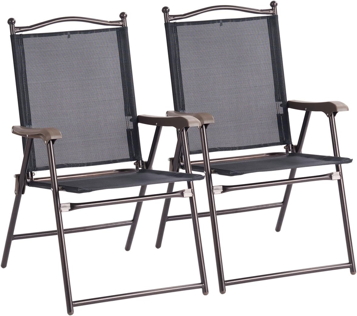 • 【Set of 2 Chairs with No Assembly Required】: Our set of 2 sling chairs come with complete assembly, which help you save much effort and time. Although equipped with powerful and strong construction, chairs are lightweight enough for you to be easily taken or moved. Two chairs set offer you much convenience and opportunity to sit together or chat with your family members or friends to enjoy spare time.