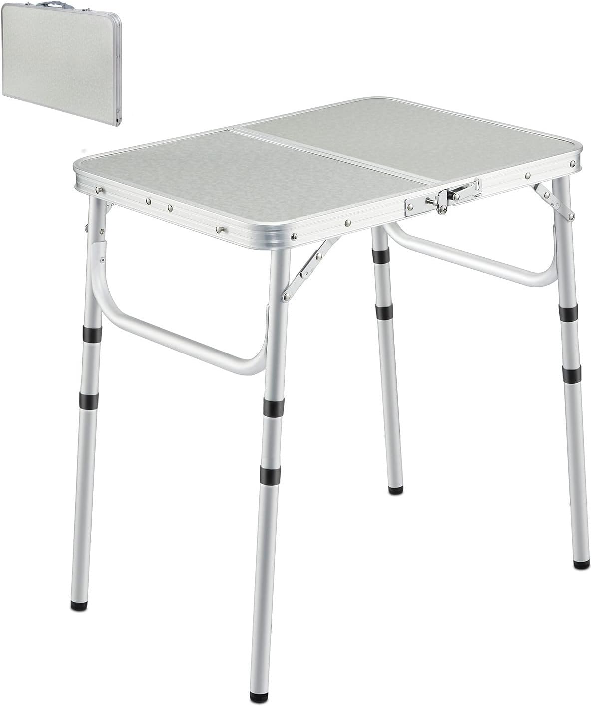 Small Folding Camping Table 2ft, Portable Outdoor Folding Table Aluminum Camp Table Adjustable Height Lightweight for Picnic Cooking Beach,3 Heights